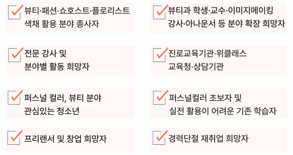 개인 피부톤과 이미지에 맞는 최적의 색을 진단·제안하는 컬러 전문가입니다.